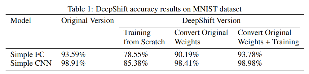 。使用了卷积移位和全连接移位的神经网络架构族即 DeepShift 模型。DeepShift 模型可以在不使用乘法的情况下实现,且