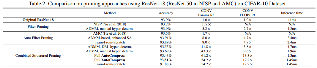 AutoCompress 的效果超过各种神经网络压缩方法与框架