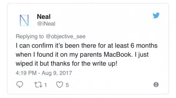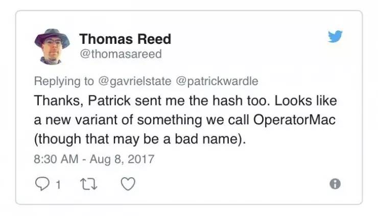 Thomas Reed表示,这是一个新的 OperatorMac 家族恶意程序升级变种,其能绕过苹果mac OS系统的安装前程序验证安全机制。而一旦中招,必须重装整个 macOS 系统。