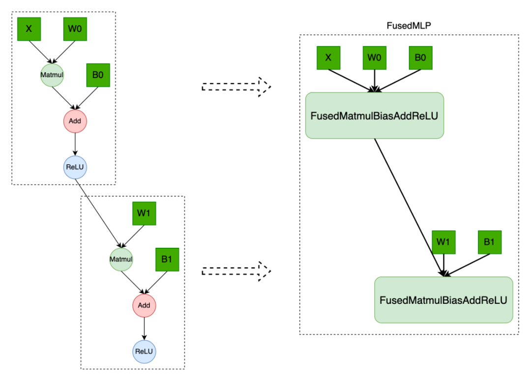 对于模型中多个全连接层部分,OneFlow 基于 cublasLt 矩阵运算库实现了 FusedMLP 算子。