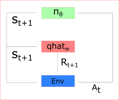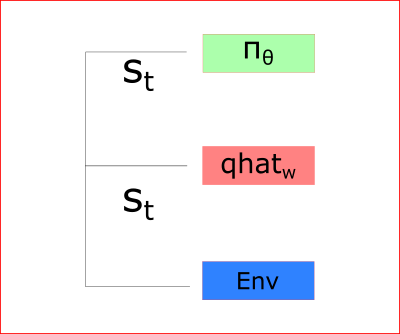 在每个时间步,我们从环境中获取当前状态(St),并将其作为输入传到Actor表演者和Critic评论家两模型中。