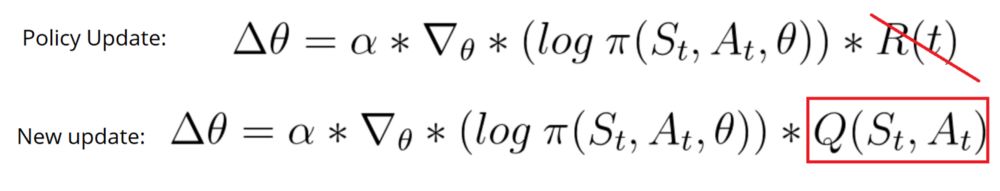 策略梯度法有一个很大的问题是,当使用蒙特卡洛策略梯度方法时,会等到整个情景episode结束后计算奖励。据此可以得出结论,若结果回报值很高R(t),整个情景中所做的行动都被是指定为是有利的(行动),即使有些行动非常糟糕。