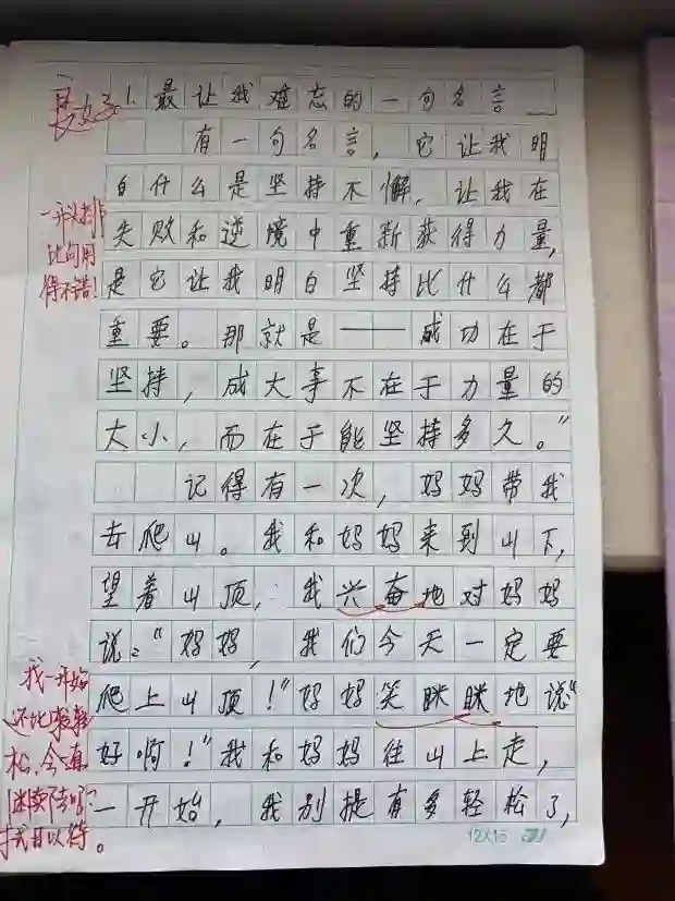 这段语音复原了女儿写的一篇作文,记录了她和妈妈一起去爬山的故事。
