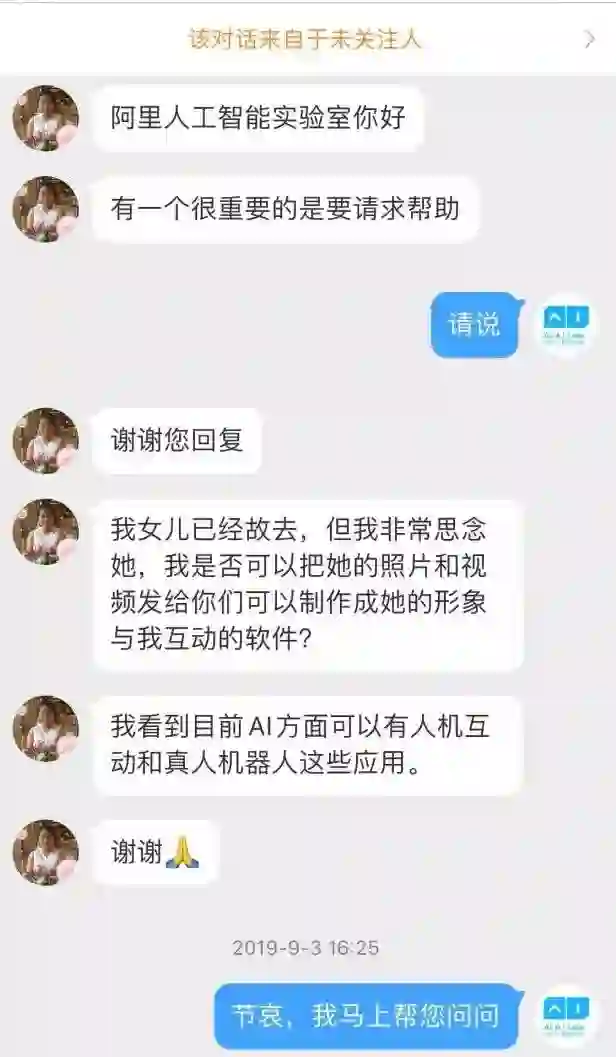 “可以把我故去的女儿做成和我互动的软件吗?”