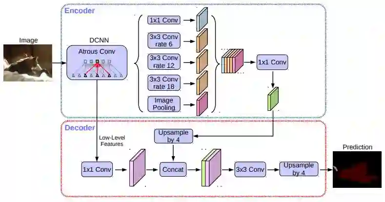 DeepLabv3+ --先前的网络可以通过使用不同变化率的过滤器和池操作来编码多尺度上下文信息。更新的网络可以通过恢复空间信息来捕捉更清晰的目标边界。DeepLabv3+结合了这两种方法。DeepLabv3+同时采用了编码器、解码器和空间金字塔池化模块。