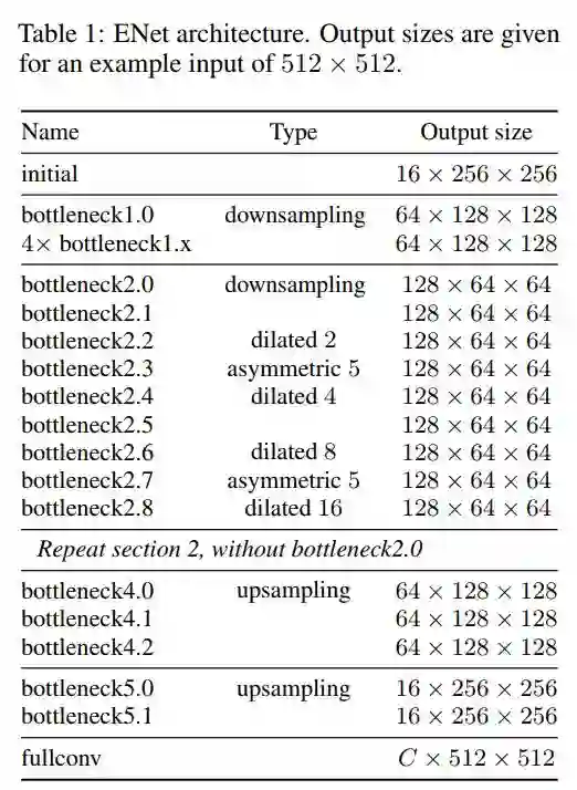 ENet(Efficient Neural Network)提供了执行实时逐像素语义分割的能力。ENet的执行速度快了18倍,且需要的浮点运算次数少了75倍,同时参数减少了79倍,并且提供了与现有模型对比相似或更高的精度(根据2016年)。在CamVid, CityScapes 和SUN数据集执行测试。