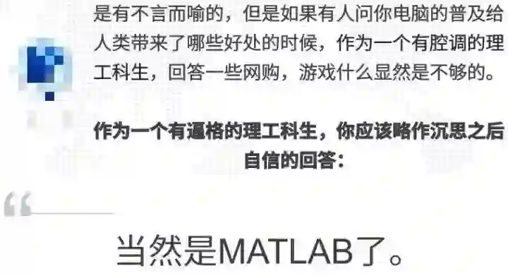 可以说,就如我们常人使用的计算器、Word、PPT一样,理工科生,由于常常要做数据分析和建模,MATLAB可以说是不可或缺的存在。搞科研、发paper,他们都离不开MATLAB。