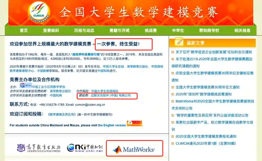 可以看到竞赛的赞助商中,MATLAB所属的MathWorks赫然在列,又赞助又不让用,这个操作着实有点迷人。MathWorks受限于川普的禁令,可能也是哑巴吃黄连,有苦说不出。