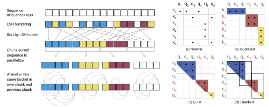 图12 Reformer模型预先使用了hashing筛选,类似桶排序,避免了对QK的计算