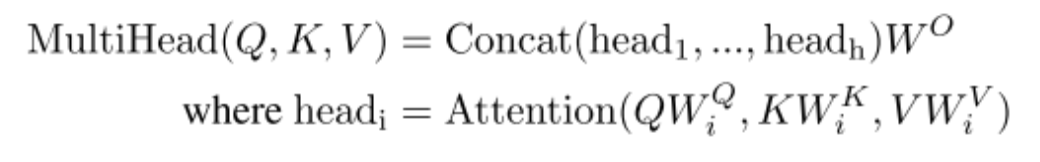 其会将原本512维的Q、K、V,通过8次不同的线性投影,得到8组低维的Qi、Ki、Vi,其维度均为64维。公式如下: