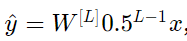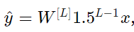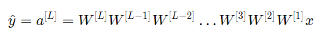 其中 L=10 ,且W[1]、W[2]…W[L-1]都是2*2矩阵,因为从第1层到L-1层都是2个神经元,接收2个输入。为了方便分析,如果假设W[1]=W[2]=…=W[L-1]=W,那么输出预测为