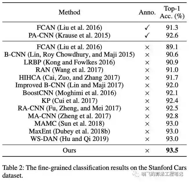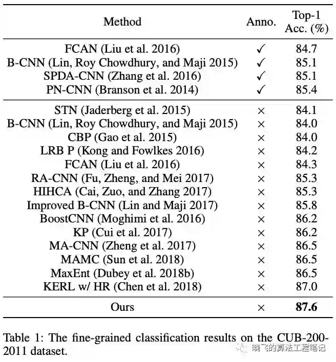 训练共需要512G内存,8张V100,下面的实验主要跟弱监督的细粒度算法进行对比,即不需要额外的标注的细粒度算法