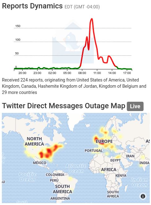 Twitter的私信服务在7月3日出现故障,如https://outage.report/twitter-direct-messages所示。