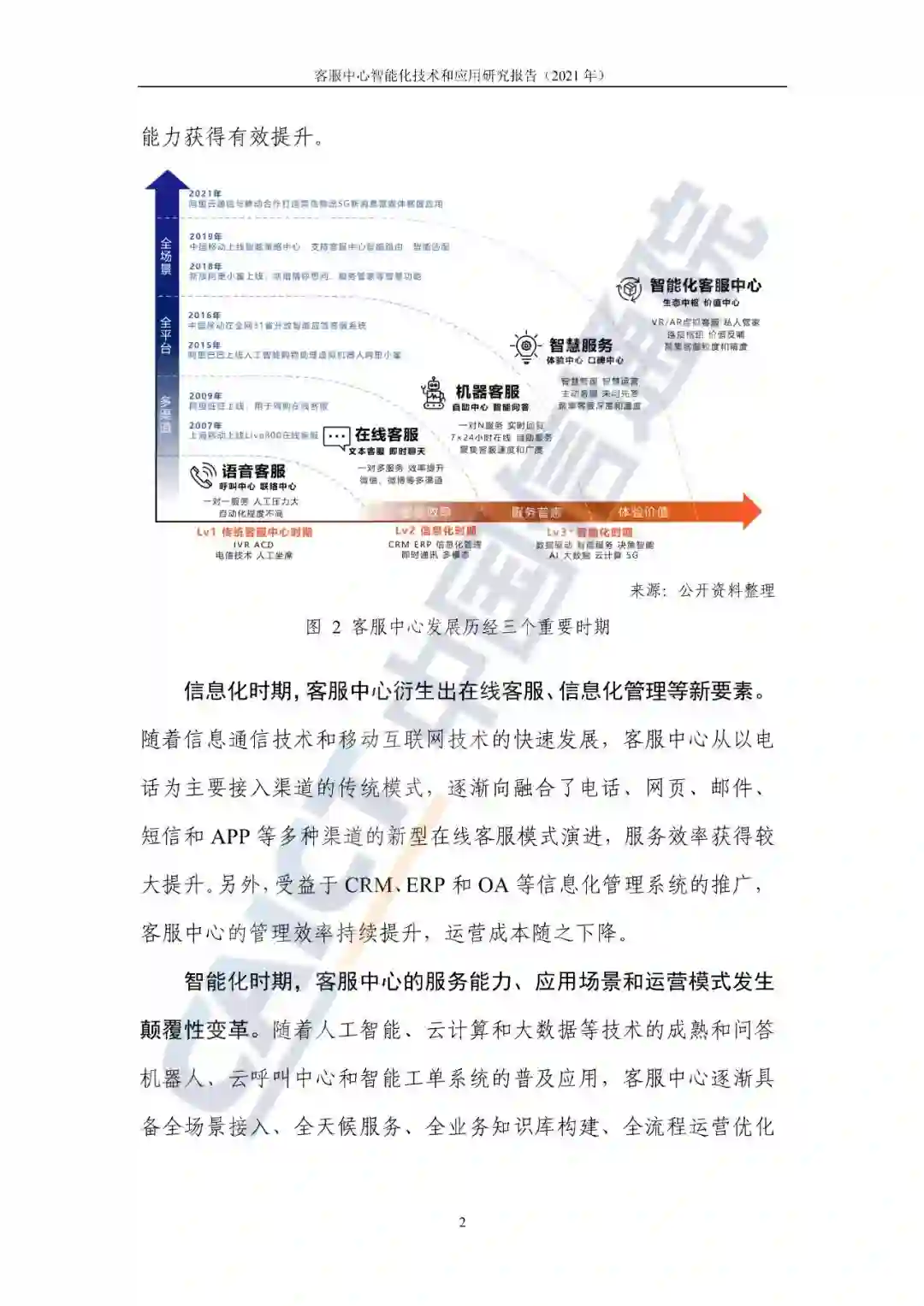 随着人工智能、云计算、大数据和移动互联网等技术的发展和消费模式的升级,客服中心的功能角色和价值定位持续发生着演变,已成为推动企业和政府等组织机构开展数字化和智能化转型的重要切入点。在国家"十四五"规划开局之年,全面回顾客服中心发展脉络,系统梳理客服中心智能化技术路线、业务场景和产业现状,并提出发展建议和参考模式,具有重要的参考意义。