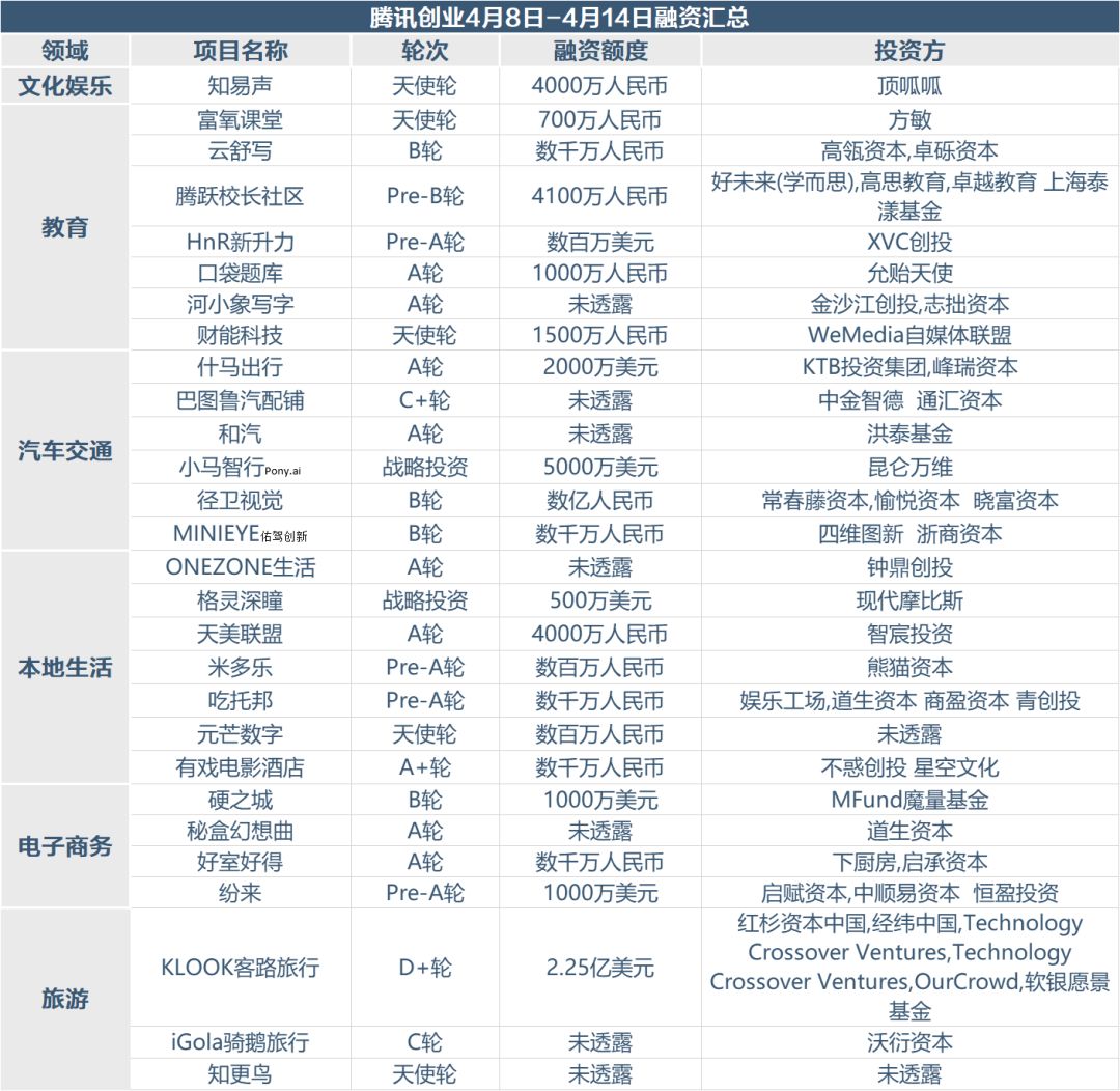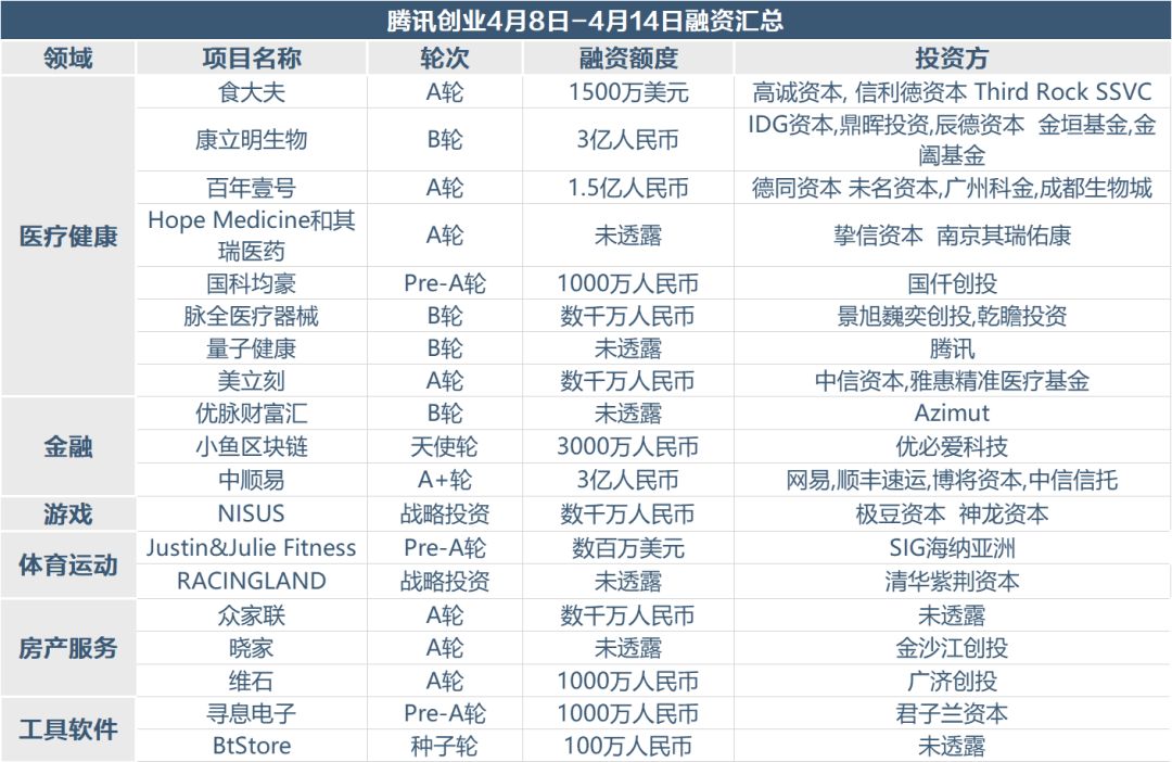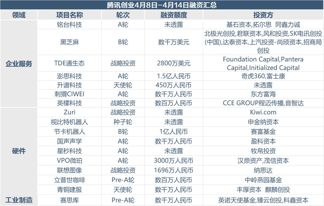 以上便是今天的企鹅数钱精编融资内容。如果你获得了融资,希望得到我们的关注,请联系我们:startup@tencent.com