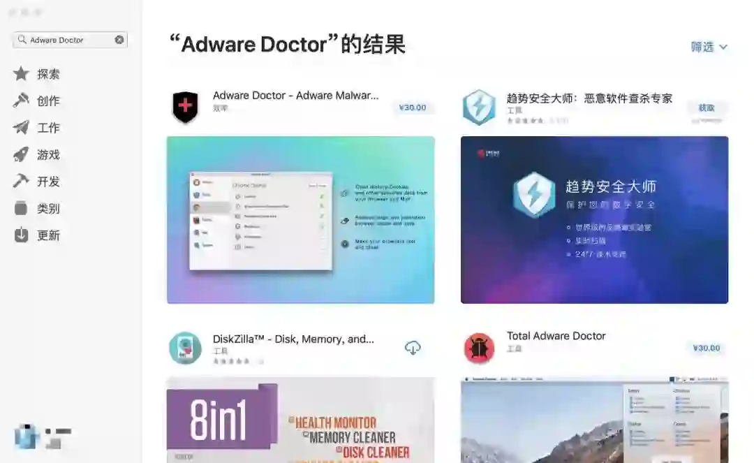 Adware Doctor 安全大师是 Mac App Store 中排名第一的付费应用程序,这是一款安全助手类的应用。根据 Mac App Store 的显示,开发者名字叫 YONGMING.ZHANG (张永明)。