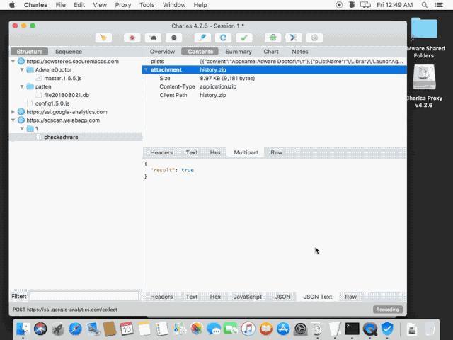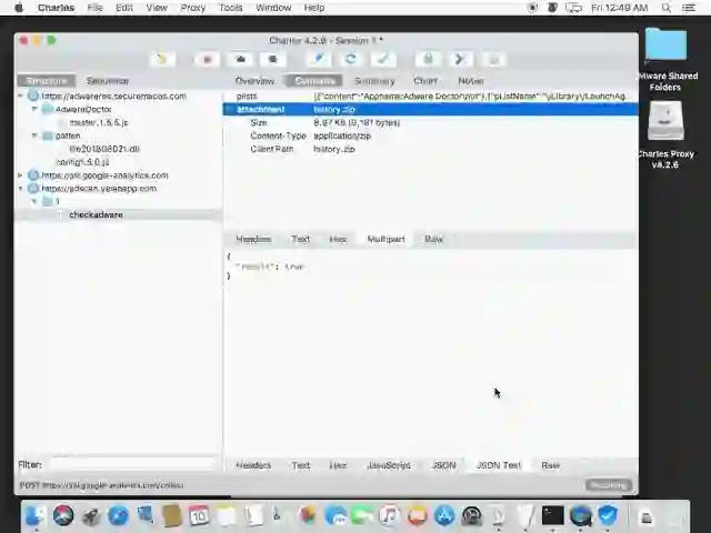 根据上图中显示,Wardle 创建了一个名为 history.zip 的受密码保护的存档。然后通过 Adware Doctor 使用,在首次运行时会请求授权访问。