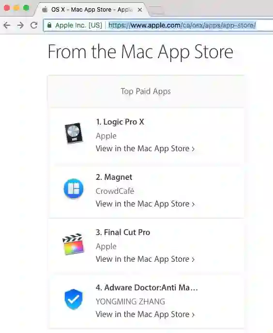 安全研究员 Patrick Wardle 在自己的博客中称,该软件目前在 Mac App Store 上列为苹果公司 “Top Paid” 排名第四的应用程序,仅次于 Final Cut Pro,Magnet 和 Logic Pro X。