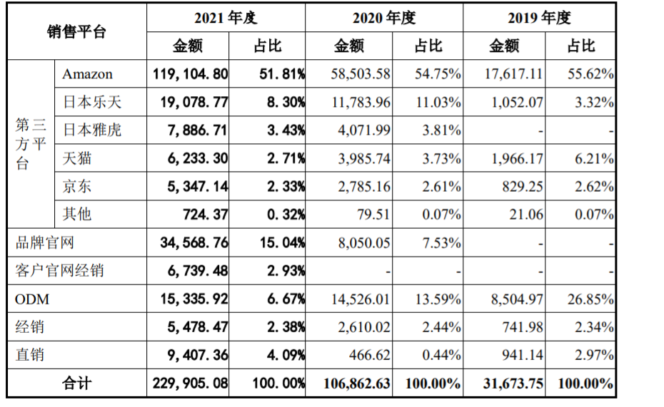 在第三方平台中,又以亚马逊为最主要销售渠道,