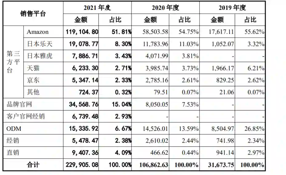 2021年亚马逊渠道占据了主收入的51.81%。除了