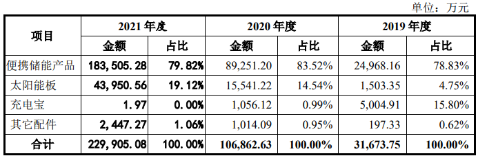 显然,华宝再度踩到了市场的风口。目前,其主要营收均来自便携储能产品,销售额分别达2.47亿元、8.93亿元和18.35亿元,占总营收比达78.83%、83.52%和79.82%。