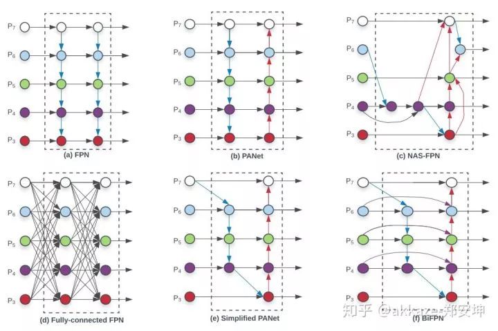检测中各种融合不同scale的方法,bifpn取得了性能和速度的最好平衡