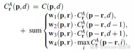 GANet借鉴sgm(semi-global matching)算法的思想,使用如下公式来进行代价聚合,