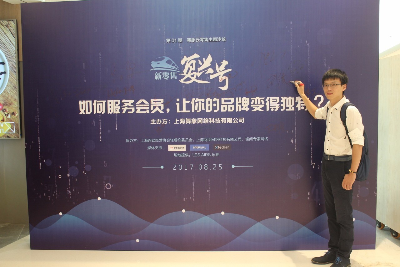 8月25日,上海舞象网络科技主办的「新零售复兴号」品牌沙龙上海站,邀请到舞象云CEO 浦健东先生、上海连锁经营协会轻餐饮委员会会长汪志刚先生、京东云电商云业务部副总 王涛先生、阅面科技CEO赵京雷先生,从零售企业SaaS服务、商业中心变革、智能零售以及电商大数据的角度切入,与现场40多位零售行业的资深专家一起,共同探讨在这波新零售浪潮下,我们该做什么?该怎么做?