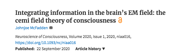 而在麦克法登的论文中,他却退回到了二元论的观点,认为意识是大脑内产生的电磁场,在这种情况下,意识是一种能量。