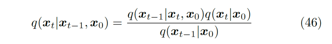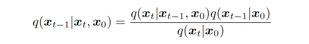 ▲ 对前向加噪过程使用马尔可夫假设和贝叶斯法则后的公式