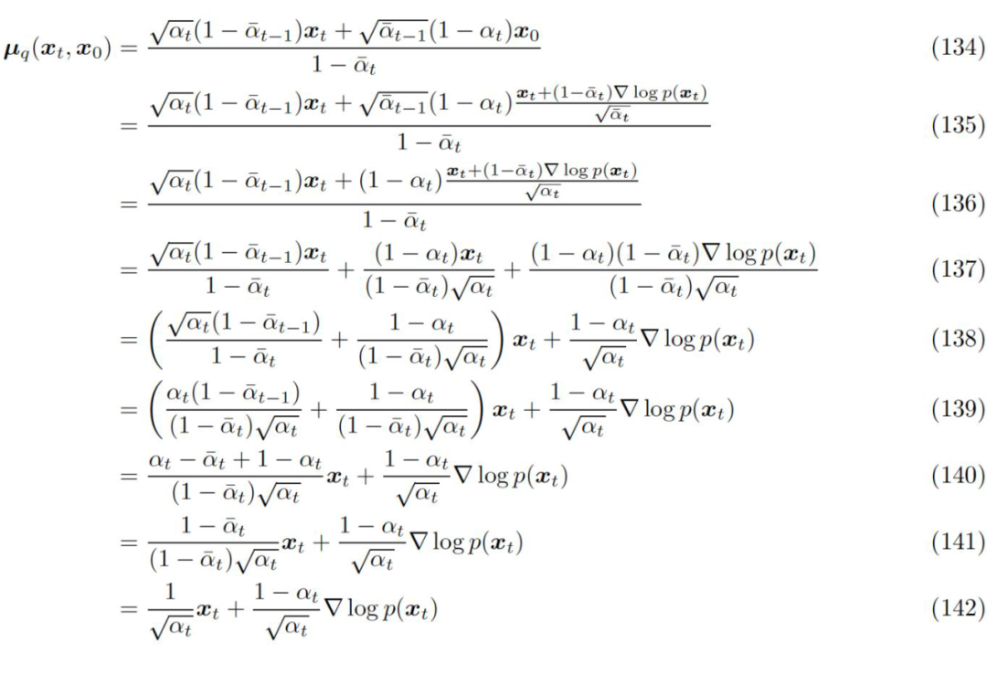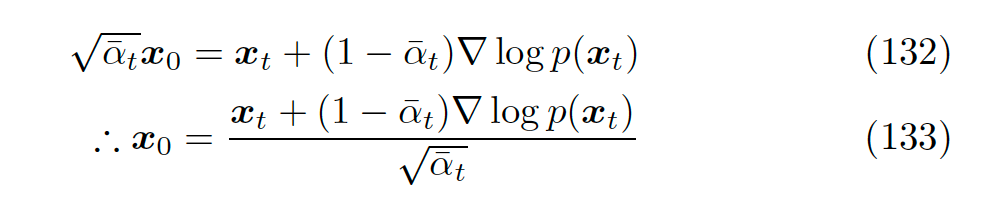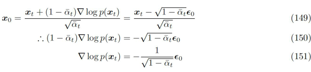 事实上,比较式 148 和式 130 的形式,可以说是非常的接近了。那么我们的 score function delta_p(xt) 和初始噪声