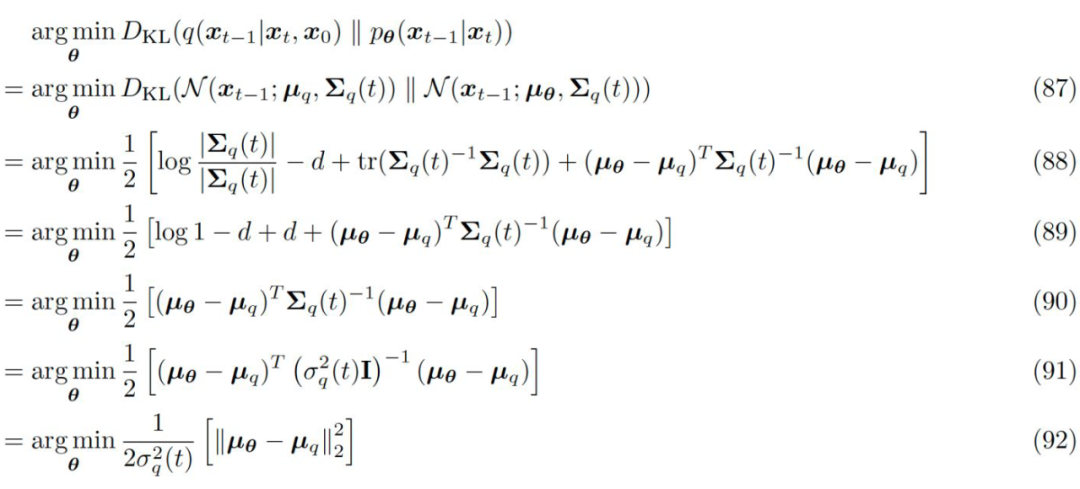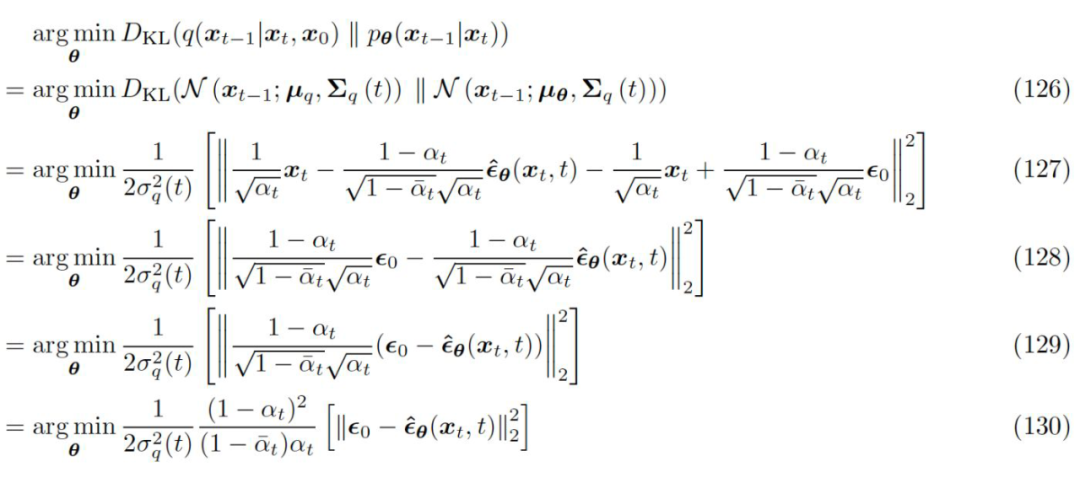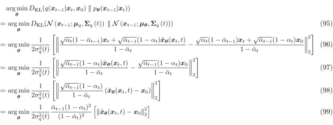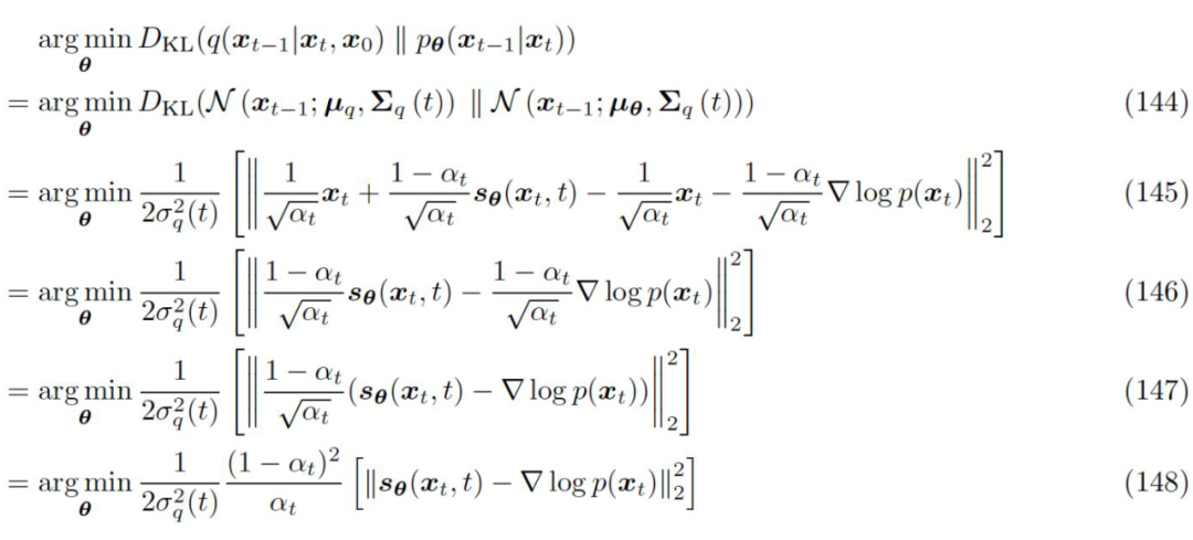 下面我们会从扩散模型的角度做公式推导,来展开计算去噪匹配项。(注意第一版的推导里的一致项,也完全可以通过下一节的方式得到 q 和 p 的表达式,再通过 KL 来计算解析式)