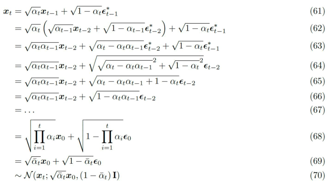 参考已经证明了前向加噪过程可以写为一个高斯分布了。在扩散模型的初始论文