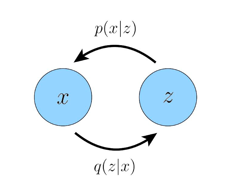 下图展示了一个变分自编码器里,潜在向量和输入间的闭环关系。即从输入中提取低维的潜在向量后,我们可以通过这个潜在向量重构出输入。