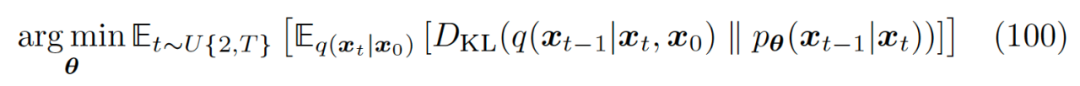 代表的是已知原始图像和目标噪声图像的前向加噪过程。该加噪过程作为目标信号,来监督后向的去噪过程。该项解决了期望建立于两个随机变量上的问题。