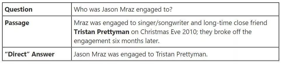 在搜索引擎上提出一个问题的时候,很多用户习惯于在结果页面顶端看到答案卡片。多数卡片会展示一个含有答案的句子,连带给出这个句子的原始语境和出处,如下所示: