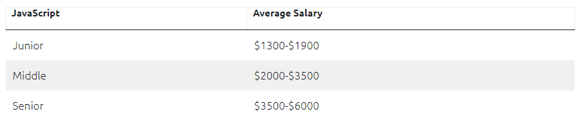 而在乌克兰 JavaScript 社区,大约有 8000 名活跃开发者,根据 PayScale 和 SalaryExpert 的数据,乌克兰 JavaScript 开发者的平均月薪为 3600 美元(约 2.2 万元人民币),不同职级对应薪资也有所不同: