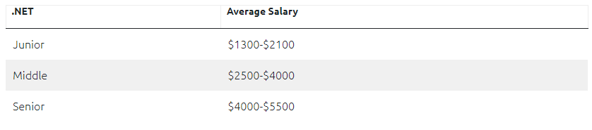 根据权威工资收入调查机构 PayScale 显示,乌克兰对 .NET 有深入了解且拥有 5 年以上工作经验的开发人员平均每年可赚取 68000 美元 。而高级 .NET 开发人员的平均月薪为 4700 美元,中级 .NET 程序员月收入虽在 3000 美元左右,但具有 2 年以上经验的年薪最高可达 39000 美元(约 24.6 万元人民币)。