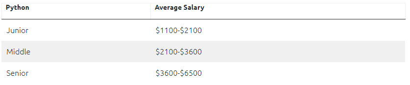 通过调查, DAXX 发现 Python 程序员在乌克兰科技行业的需求量也很大,Python 软件开发人员的平均工资可达每月 3800 美元,其中高级 Python 程序员起步月薪更是最高可达 6500 美元(约 4.1 万元人民币)。