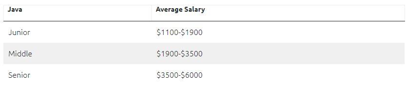乌克兰在 Java 人员储备方面较有优势,约有 5000 名高级 Java 程序员、2000 名中级 Java 程序员和 2000 名初级 Java 程序员。高级 Java 程序员平均月薪约 4700 美元 ,中级 Java 开发人员每月 2700 美元,而初级 Java 软件工程师每月收入约为 1500 美元。