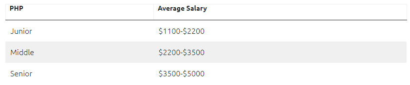乌克兰的 PHP 软件开发人员也数量惊人,共有超过 9000 名技术专家从事 PHP。其中高级开发人员年薪约 51000 美元,中级 PHP 程序员年薪在 26000-42000 美元之间,初级 PHP 工程师年薪最高可达 26000 美元(约 16.4 万元人民币)。