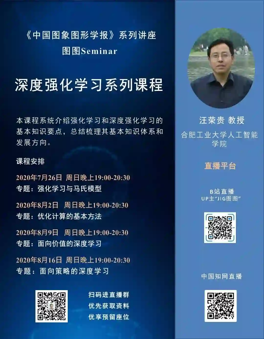 为了帮助广大机器学习爱好者顺利入门深度强化学习,“图图Seminar”特别邀请合肥工业大学汪荣贵教授,为大家带来“深度强化学习系列课程”,本次课程