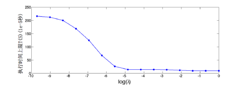 如果都是全局最优解,那么λ怎么取?如果我有两个λ,一个小一点,另外一个大一点,现在S1是这个问题的全局最优解,S2是这个问题的全局最优解,我们知道λ小的时候所对应的时间阈值更大。看这个图,λ变得越来越大的时候,上限会这样去降,刚开始会降的很厉害,到一定程度以后就已经降不大了。