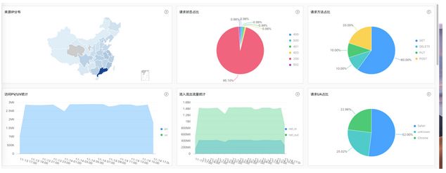 日志服务Nginx dashboard:使用日志服务内置的地图、饼图、折线图等可视化Nginx日志指标