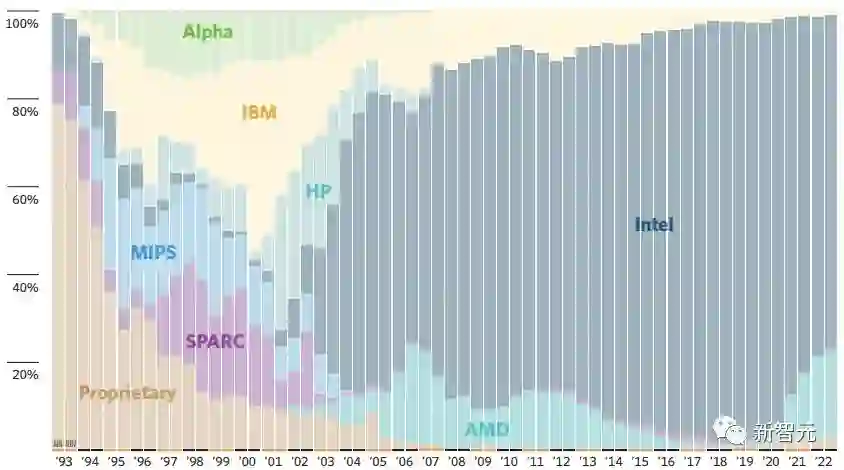 据统计,虽然本期Top500中,仅有20.2%的机器采用AMD X86处理器,75.8%的机器基于Intel X86处理器,但一半的新系统和75%的新性能——都依托于AMD的芯片。