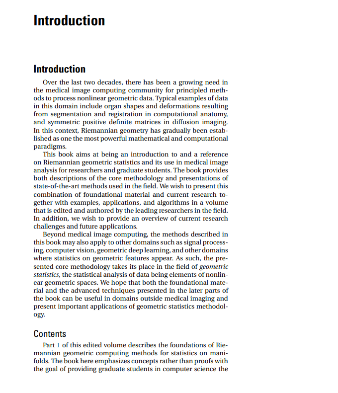 本书后半部分介绍的基础材料和先进技术可以在医学成像之外的领域有用,并展示几何统计方法的重要应用。