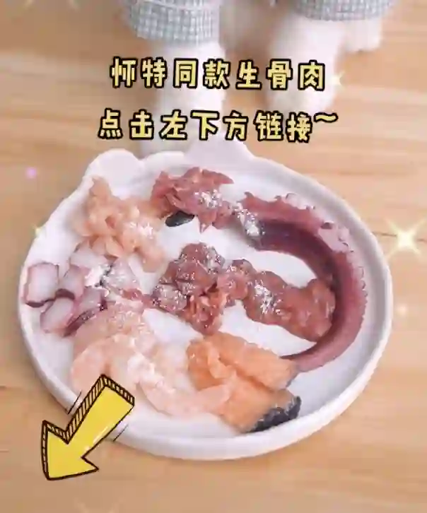 国内类似视频也倾向于展示给宠物科学配餐的过程,一顿饭里会出现许多不同种类的冻干、生骨肉,以及佐餐的蔬菜水果零食。