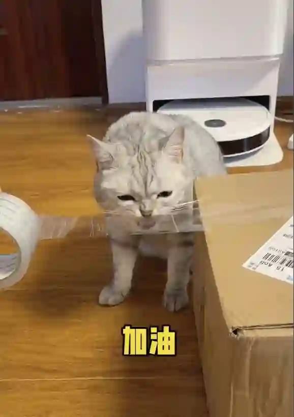 诱导猫咬断胶带,一旦误食,可能会导致消化道阻塞。