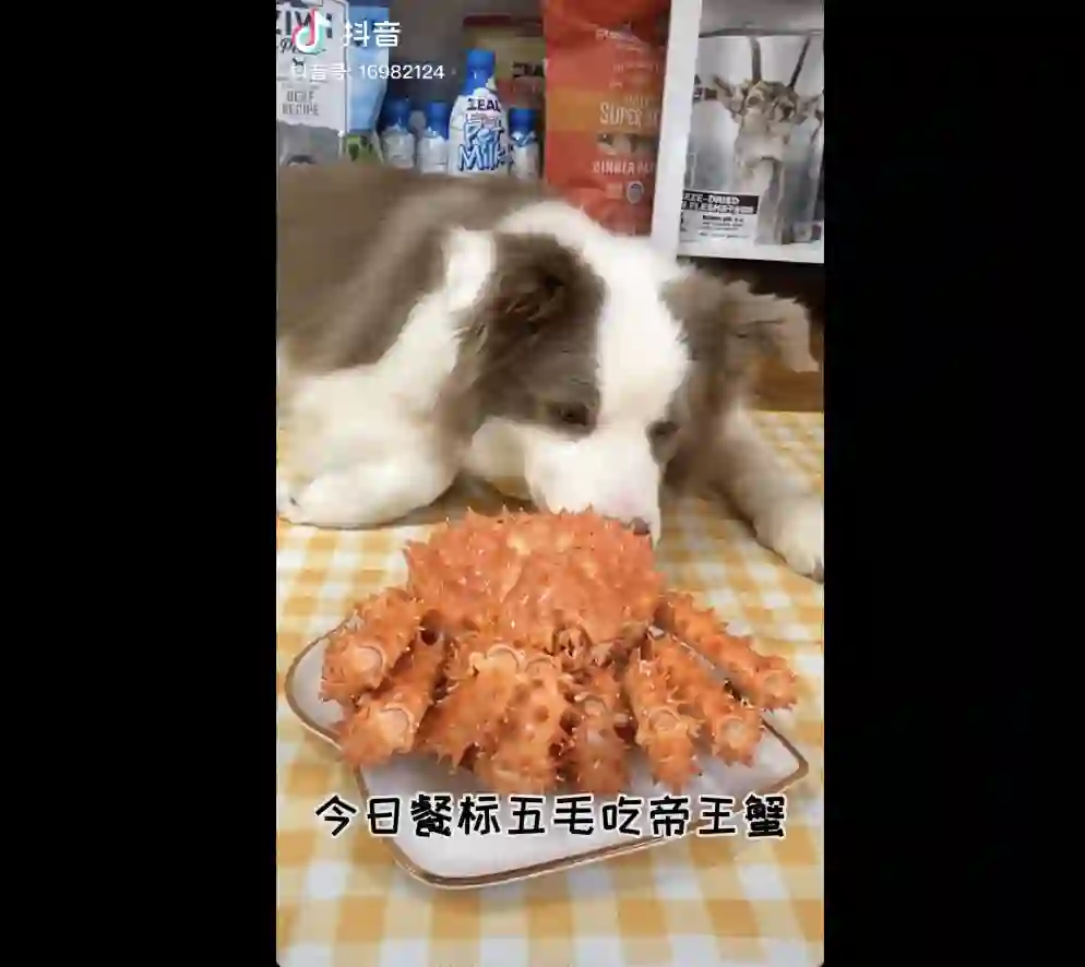 评论区里一边在感叹:“我吃的还没狗好”、“你家还缺狗吗”,一边等待着视频中的主人下一次给食盆里丢下更奇异的食物。