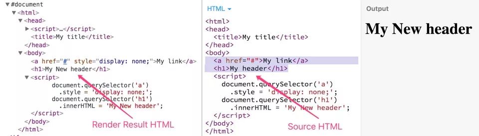 浏览器请求动态逻辑页面, 网络返回的 HTML 源码与页面渲染完成后的 HTML 有差异. 动态逻辑页面的源码和渲染结果有差异:
